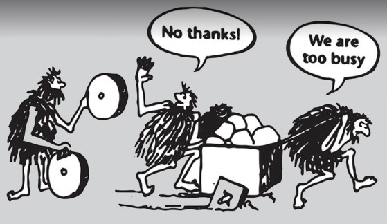 The image below exemplifies how our mindset gets in the way. We’ve been on both sides — trying to help people use the wheel to improve their lives and being too busy to accept (or even see) the offer to help. To succeed, we need to nurture an analytics community that promotes a mindset of continuous change.