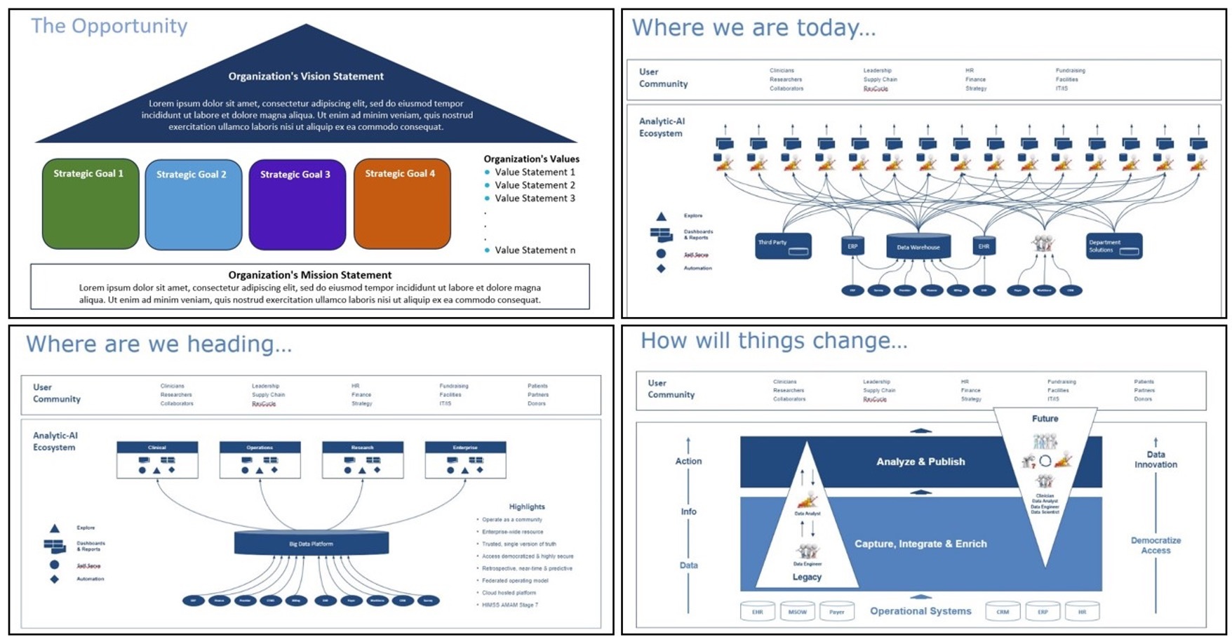 - Where are we today (e.g., a representation of your current data and analytics ecosystem)?