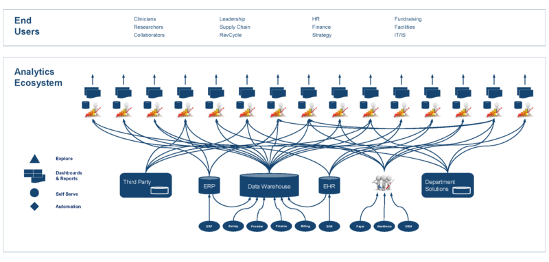 Many application vendors aim to market their analytics platform as an enterprise solution, particularly well-suited for delivering operational reporting to bolster clinical operations, clinical research, finance, supply chain, HR, and more. However, this is only part of your analytics platform architecture. To address the strategic needs of the enterprise, you will need a trusted, single version of truth that integrates data across these environments to a platform that supports analytics and AI at a massive scale using structured and unstructured data that is nimble, adaptable, highly secure and cost-effective.