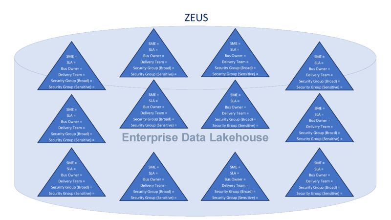 We’ll describe such a framework and call it Zeus. Zeus exists for multiple reasons, including the ease of managing security by defining one business owner for each SMA to help with data governance and change management. Each SMA in a Zeus framework is assigned a designated business owner, a dedicated delivery team accountable for construction and upkeep, an inclusive security group facilitating self-service to the 'open' schema, and a more restricted security group governing access to sensitive data within a highly secured schema. Additionally, a service level agreement dictates the data refresh frequency, specific times of day, and outlines the support level in the event of a failure. For instance, platinum status triggers immediate notifications upon failure (day or night), gold aims for resolution by the end of day, and silver before month-end.