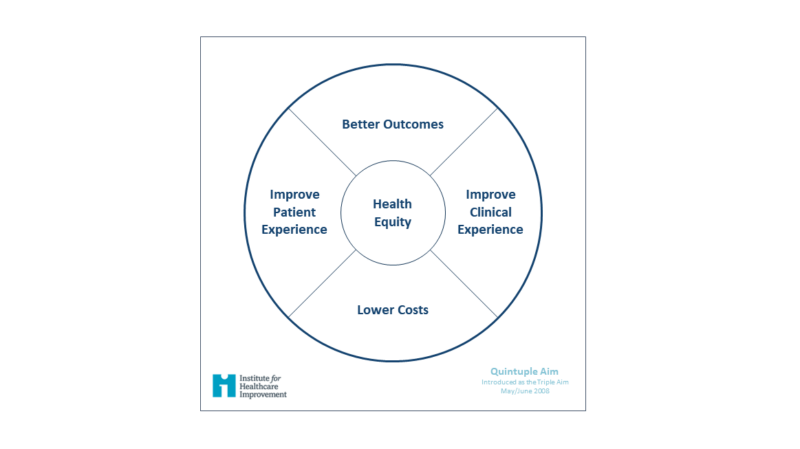If you are unfamiliar, the Institute for Healthcare Improvement (IHI) introduced the Triple Aim framework. It was conceptualized by Donald Berwick, Thomas Nolan, and John Whittington, and was first described in a 2008 article in Health Affairs. The framework was developed to guide healthcare organizations and systems in optimizing health system performance by simultaneously focusing on improving the individual experience of care, improving the health of populations, and reducing the per capita care costs. The Triple Aim provides a valuable framework to focus our efforts and measure progress.