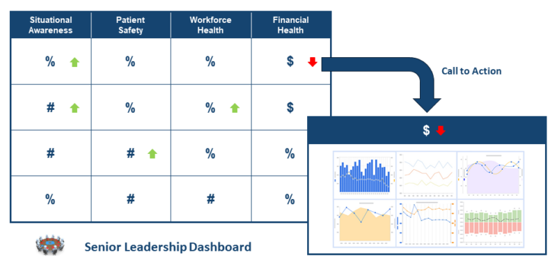 There are a few things to consider to promote the adoption, drive value early, and bend the curve. Provide measures that the end user can’t find elsewhere. In many environments, this can include near-time and predictive measures on items like census, staffing, expense, health equity, etc. Also, ensure the solution is mobile-enabled. This will go a long way to driving adoption and moving the organization in a proactive direction.