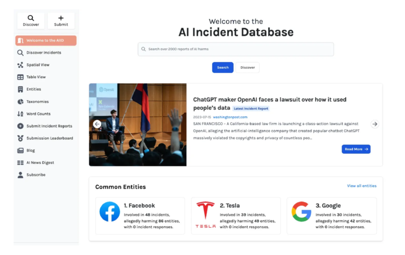 "The AI Incident Database is dedicated to indexing the collective history of harms or near harms realized in the real world by the deployment of artificial intelligence systems. Like similar databases in aviation and computer security, the AI Incident Database aims to learn from experience so we can prevent or mitigate bad outcomes."