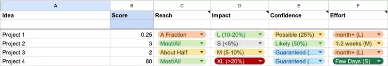 Employing the mind map and RICE framework also paves the way for the creation of a data-based index (DBI). This index enables us to measure and rank projects based on their alignment with corporate goals, resource efficiency, and confidence in implementation. Consequently, we can objectively compare projects — those with higher DBI scores are typically more likely to succeed.