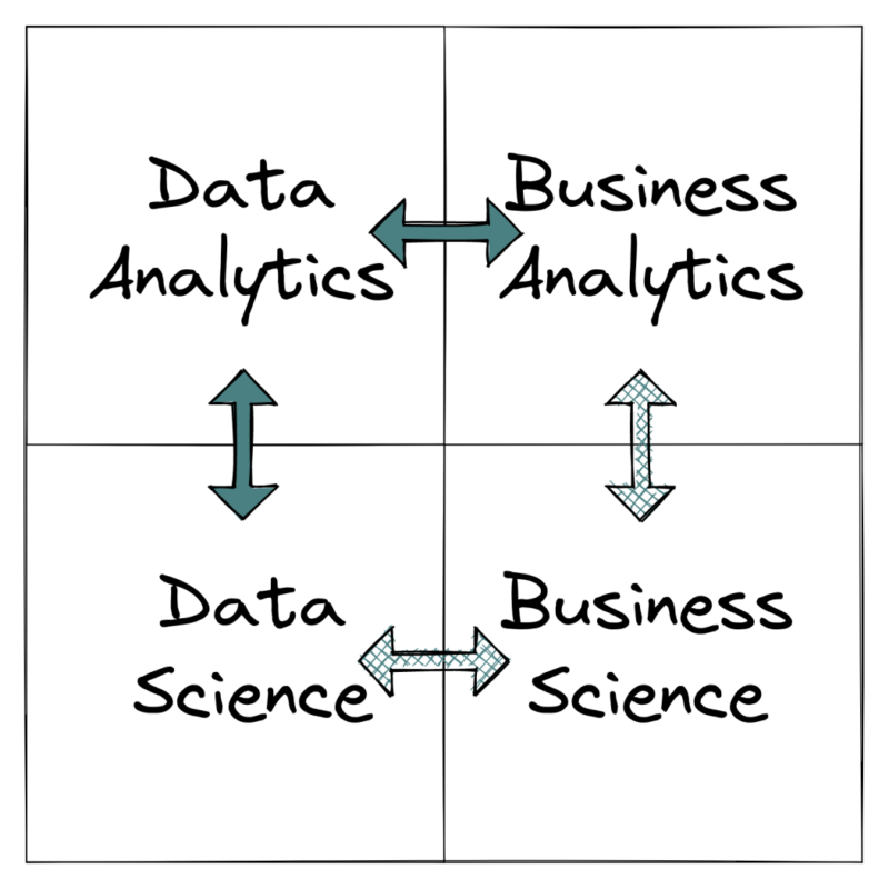 Business science is closely related to other fields, such as business analytics and data science. To understand the role and future of business science, you can compare the similarities and differences between the four fields.