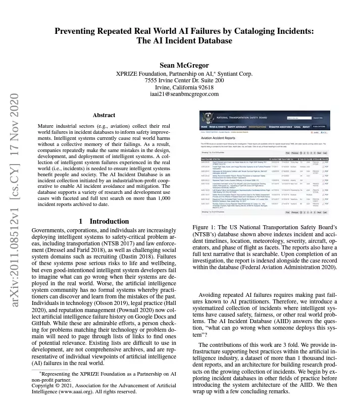 Much like how transportation professionals investigate and catalog incidents to prevent future occurrences, ML researchers and organizations have started collecting and analyzing AI incidents. The A.I. Incident Database, which we also brought up in the last article, is a prominent repository that allows users to search for incidents and glean valuable insights. When developing an ML system, consulting this resource is crucial.