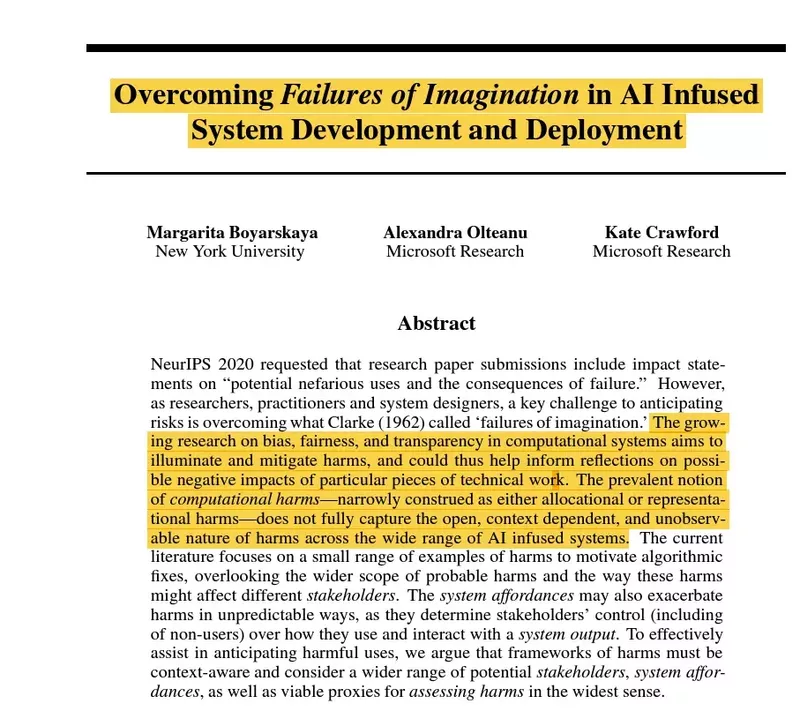 Often, AI incidents stem from unforeseen or poorly understood contexts and details of ML systems' operations. Structured approaches outlined in the paper "Overcoming Failures of Imagination in AI-Infused System Development and Deployment" offer ways to hypothesize about these challenging future risks, in addition to considering aspects such as "who" (including investors, customers, and vulnerable nonusers), "what" (covering well-being, opportunities, and dignity), "when" (including immediate, frequent, and long-term scenarios), and "how" (involving actions and belief alterations) related to AI incidents.