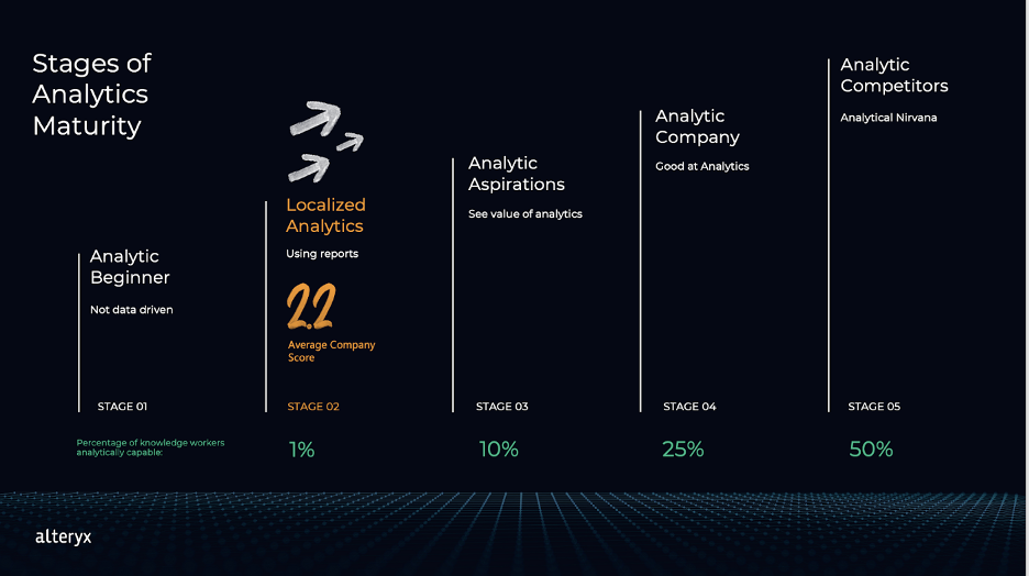 Perhaps the most important step in improving your organization’s analytics maturity is upskilling knowledge workers across the organization — or democratizing analytics. This is the most effective way for enterprises to surpass sub-50% of data-driven decision-making.