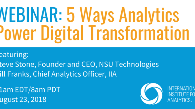 Are you working to harness the power of digital technology to enhance existing customer value, discover new market opportunities, manage risk, and improve operational efficiency? At the heart of digital transformation is data. New digital technologies are generating mountains of new data that is captured by organizations. However, without analytics, this data provides little or no value. This webinar will explore the five key ways analytics power digital transformation inside organizations.
