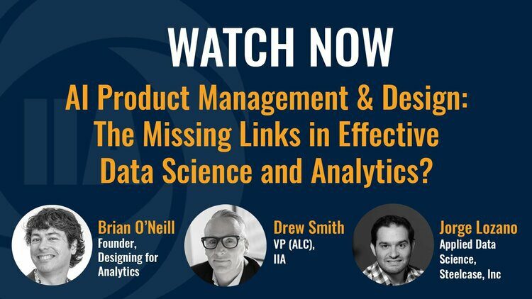 Join Brian O'Neill as he shares his expertise and research on how a "product thinking" approach - both design and management - can increase the value you actually deliver through analytics.