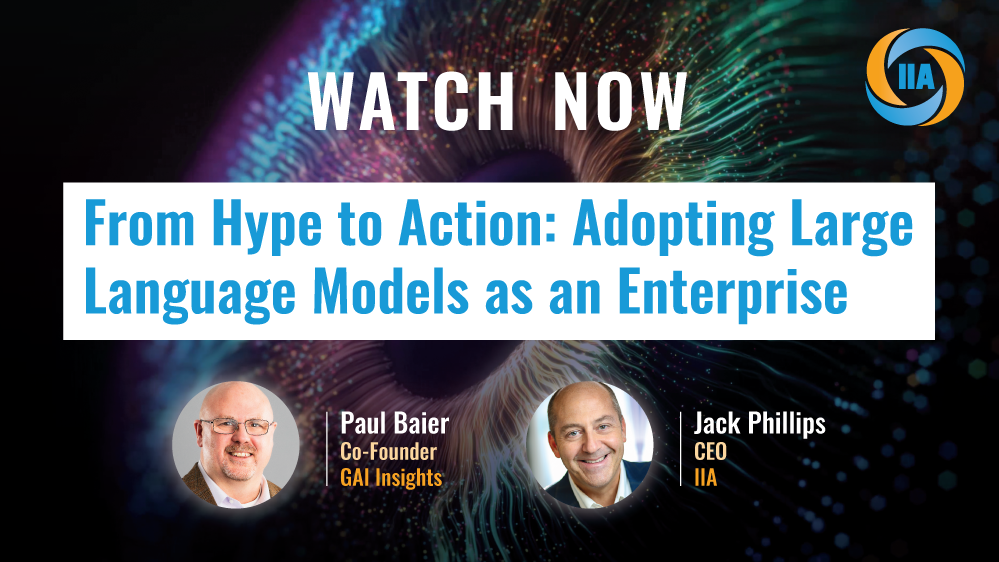 In IIA’s 2023 Predictions and Priorities, we made the claim that large language models and generative AI would grow exponentially over the next year. But not even our experts could have imagined the grip LLMs would have on corporate executives and consumers alike at the midpoint of 2023. Surely, this buzz feels different and now it’s time to test and learn LLM technologies to propel enterprise-level data and analytics initiatives forward.