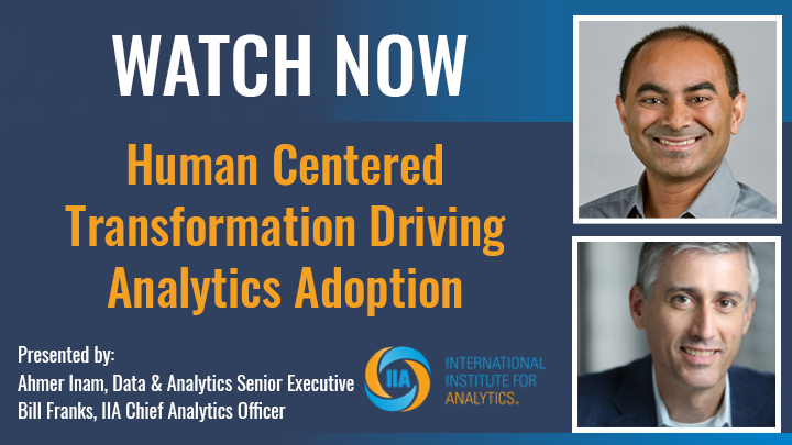 Join Ahmer Inam, a senior data and analytics leader with former executive roles at Nike Inc and Cambia Health Solutions, and Bill Franks, CAO of IIA as they discuss the pathways towards driving adoption of analytics at enterprise scale to drive organizational transformation.