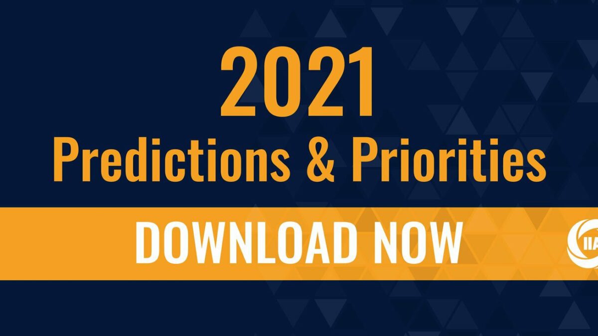 We are pleased that our annual Predictions and Priority research brief and the associated webinar have become among IIA’s most popular pieces of content of the year. This year, we’re once again augmenting each of our predictions with a specific priority for leaders to focus on as they attempt to address each prediction. As a result, each priority provides specific guidance as to how to best prepare for, and adapt to, its corresponding prediction.