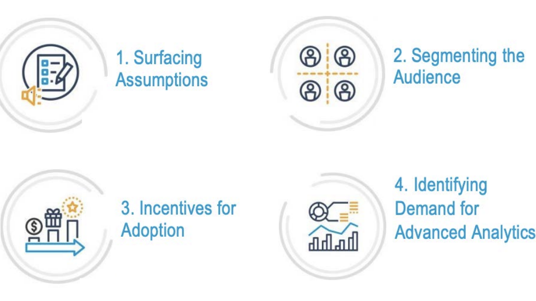 Identify Demand for Analytics: Once you have enabled your demand side to self-service, you must turn your focus to enabling an advanced analytics program by looking for saleable wins.