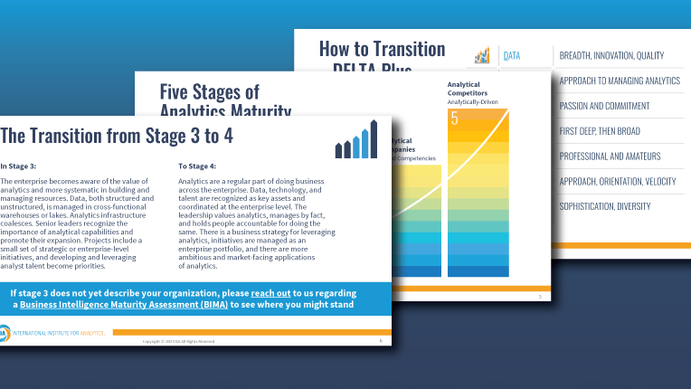 Embark on a transformative journey to enhance your organization's analytical capabilities with our latest eBook, "Analytics Maturity Transition: Stage 3 to Stage 4." This guide provides a roadmap for organizations moving from Stage 3, where analytical awareness takes root, to Stage 4, where analytics becomes seamlessly integrated into the enterprise. Delve into key aspects – Data, Enterprise, Leadership, Targets, Analysts, Technology, and Analytics Techniques – and gain practical advice to transition and excel in analytics. Whether you're fostering data management capabilities or becoming a champion of analytics, this eBook equips you with actionable insights to navigate the transition successfully and position your organization as a leader in 2023.