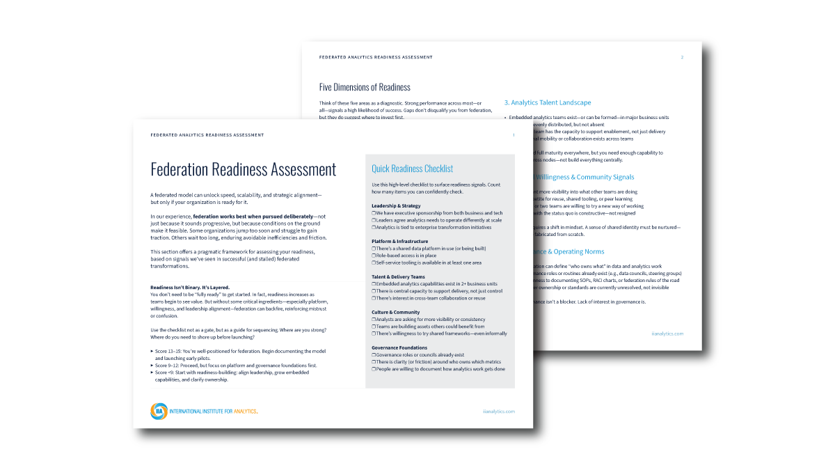 You don’t need to be “fully ready” to get started. In fact, readiness increases as teams begin to see value. But without some critical ingredients—especially platform, willingness, and leadership alignment—federation can backfire, reinforcing mistrust or confusion.